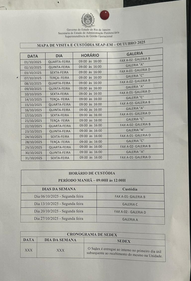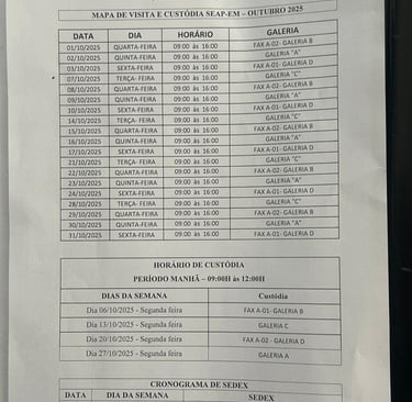 Informações para familiares ou advogados, referente o presídio Evaristo de Morais, famoso Galpão.
